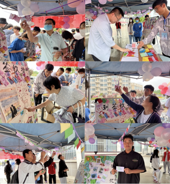 525活动分为两个环节。第一个环节为指纹签到,老师和同学们纷纷在自己喜欢的主题上留下指纹,代表对未来的期望。第二个环节为“语”你能量,通过领取专属于自己的信封,赋予同学们面对未来生活及学习的能量。