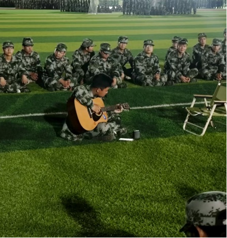 谁说军训只有严肃紧张?军训生活同样充满欢乐与活力!休息间隙,拉歌比赛如火如荼,《强军战歌》的激昂旋律,呐喊声、欢笑声此起彼伏;才艺展示环节,吉他弹唱、舞蹈表演轮番登场,迷彩服也挡不住青春的张扬与个性的闪耀,让军训场成为“欢乐能量场”。