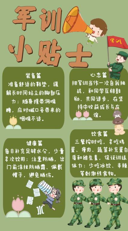 为了让大家更好地度过军训时光,小编特意准备了暖心小贴士: