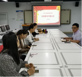 2022年9月14日,电子与信息公司党支部在宝福路校区电子信息大楼2606召开纪律教育学习宣传月工作部署暨集中学习会议。支部书记高赋同志主持,蟠龙校区博学楼207设线上分会场,支部全体党员参加。