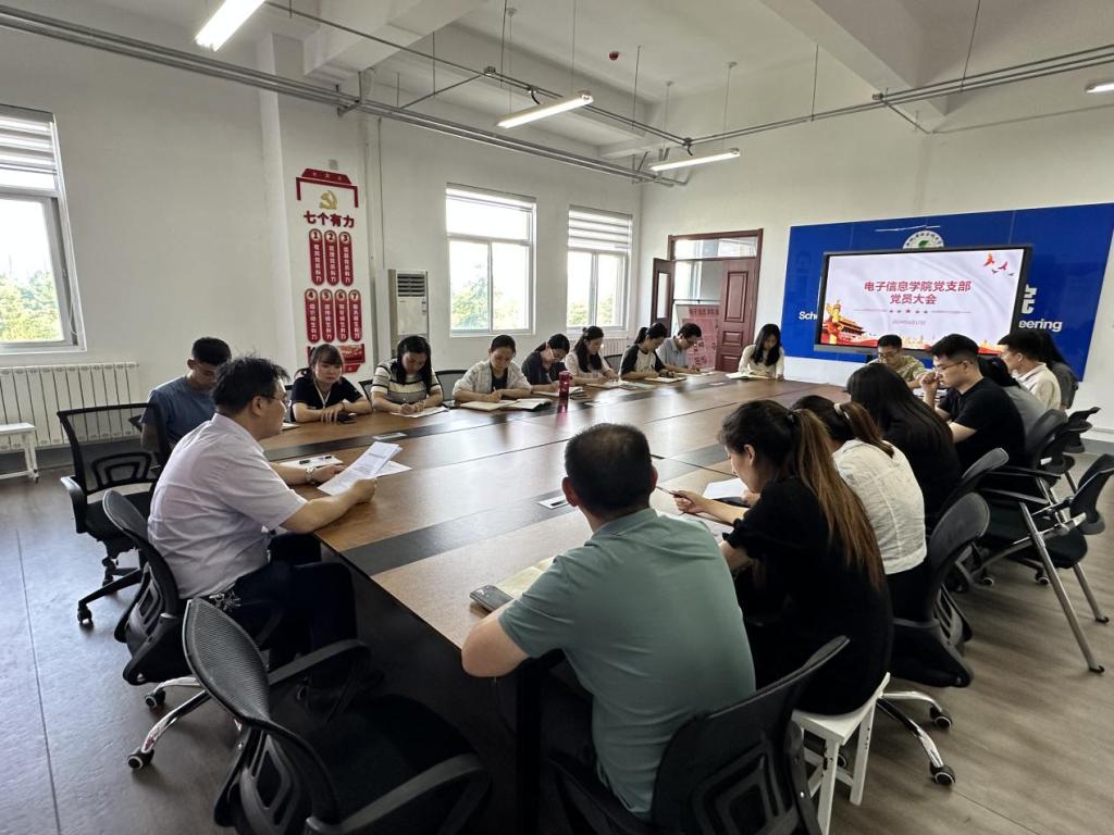 电子信息公司党支部于2024年6月17日下午,在强技楼东203会议室召开全体党员大会,会议由党支部书记杨鹏主持,全体党员参加。