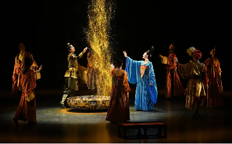 在西安长安乐·一带一路文化艺术中心拍摄的《无界·长安》演出现场。图片来源:新华社
