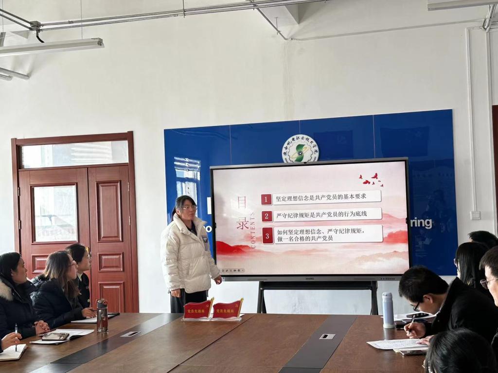 首先,党支部纪检委员郭巧梅讲授了“坚定理想信念 严守纪律规矩”主题党课。从“坚定理想信念是共产党员的基本要求、严守纪律规矩是共产党员的行为底线、如何坚定理想信念、严守纪律规矩,做一名合格的共产党员”三个方面,教育引导党员干部要深刻理解“六大纪律”的内涵,时刻保持清醒头脑,坚定政治立场,切实做到学纪、知纪、明纪、守纪,始终做到忠诚干净担当。