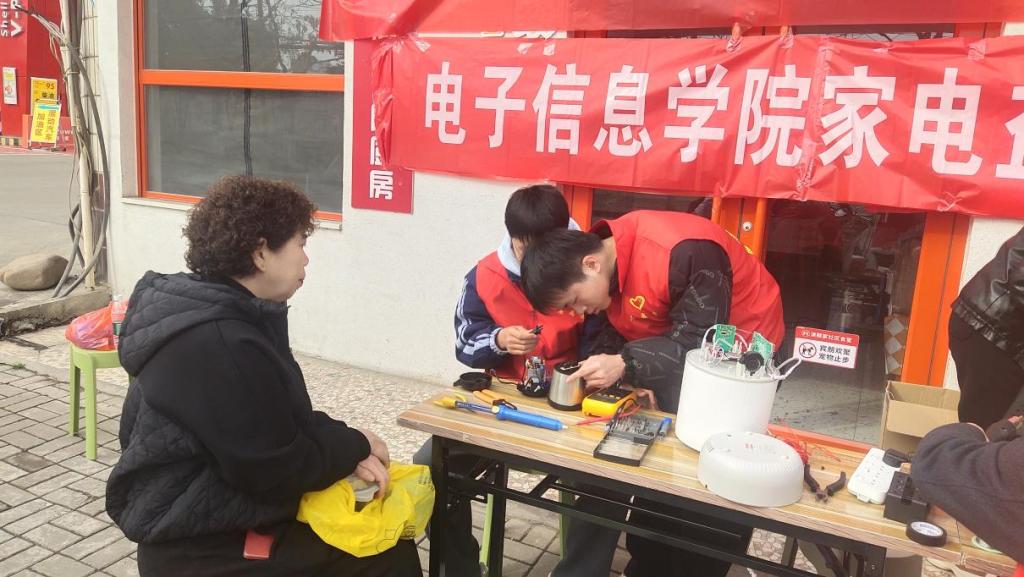 活动在金台区宝福路东社区开展,前来为家电“问诊”的居民,络绎不绝。教师党员带领志愿者们凭借扎实的专业知识和丰富的实践经验,迅速投身到维修工作中,从故障排查到零件更换,每一个环节都严谨细致,力求让每一件“待诊”家电恢复正常运转。