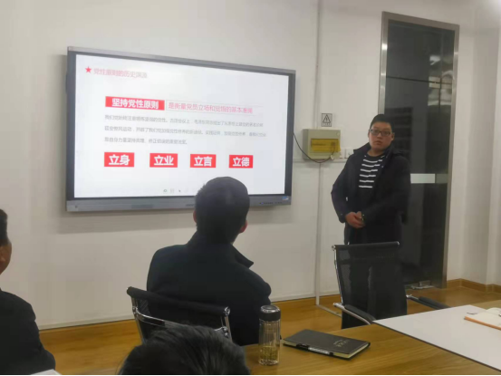 高赋同志结合革命先辈事迹、典型案例,围绕党性原则的历史渊源、基本内涵和如何加强党性修养进行了详细讲解,阐明了坚持党性原则的重要意义。勉励全体党员要切实增强“四个意识”,做到“两个维护”;要始终对党忠诚,敢于坚持原则,经得起各种风浪和诱惑的考验;要勇于自我剖析,虚心接受批评监督,不断锤炼党性,提升修养,永葆政治本色。