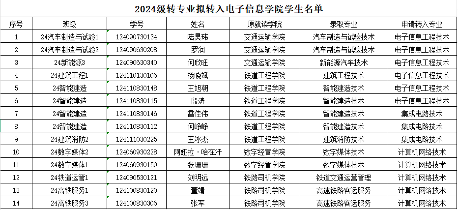 根据《best365官方网站学籍管理规定(修订)》(陕机电职院发〔2022〕151号)、《best365官方网站员工转专业工作实施细则》(陕机电职院发〔2024〕48号)等相关文件规定,依据《best365关于2024级员工转专业工作实施方案》,经教务处审核,现将符合转专业员工名单公示如下: