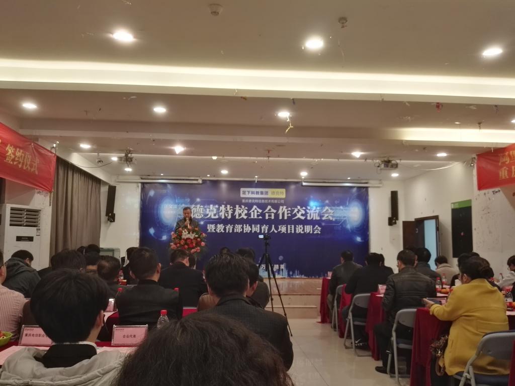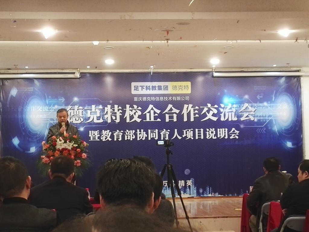 2017年11月21日至24日,信息工程系负责人杜海军陪同公司张新堂副经理到重庆足下科教集团德克特信息技术有限公司参加第二批“产学合作协同育人”高峰论坛——高效智能人才培养方案案例分析及研讨和德克特校企合作交流会暨教育部协同育人项目说明会。