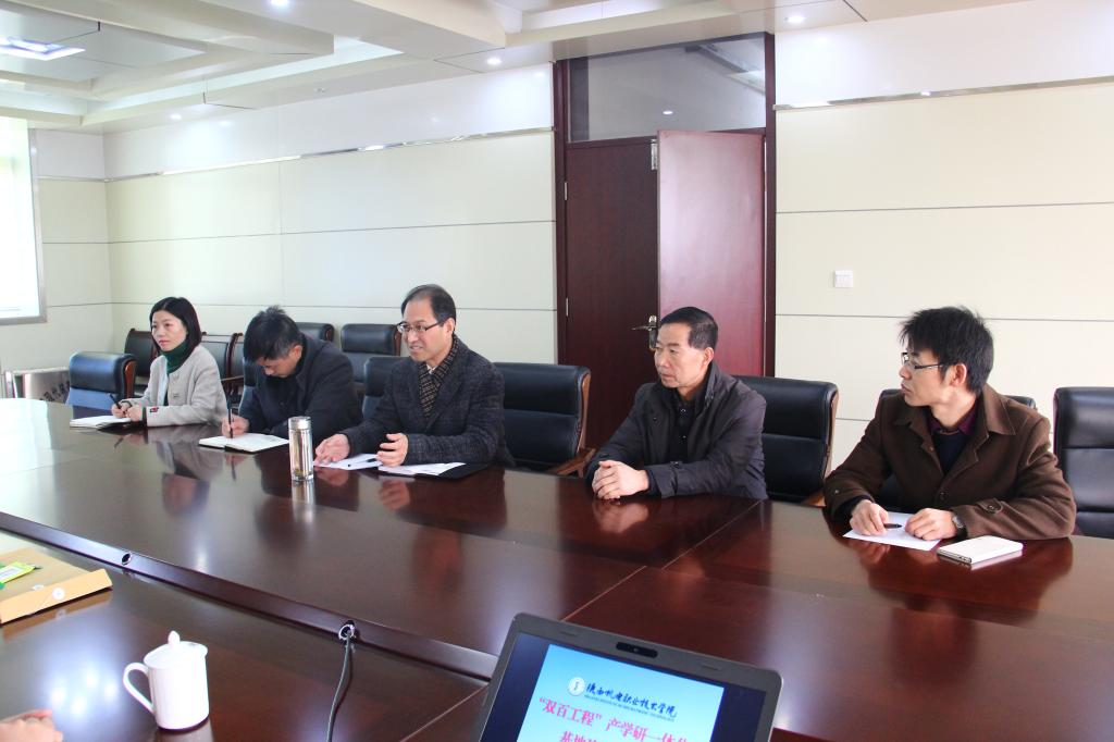 2017年11月27日,信息工程系、机电工程系协同公司领导与宝鸡市眉县宝深集团、齐峰果业等企业在公司进行“双百工程”产学研一体化基地建设对接会,公司领导和企业代表就产学研一体化基地建设深入探讨,最后达成一致意见。