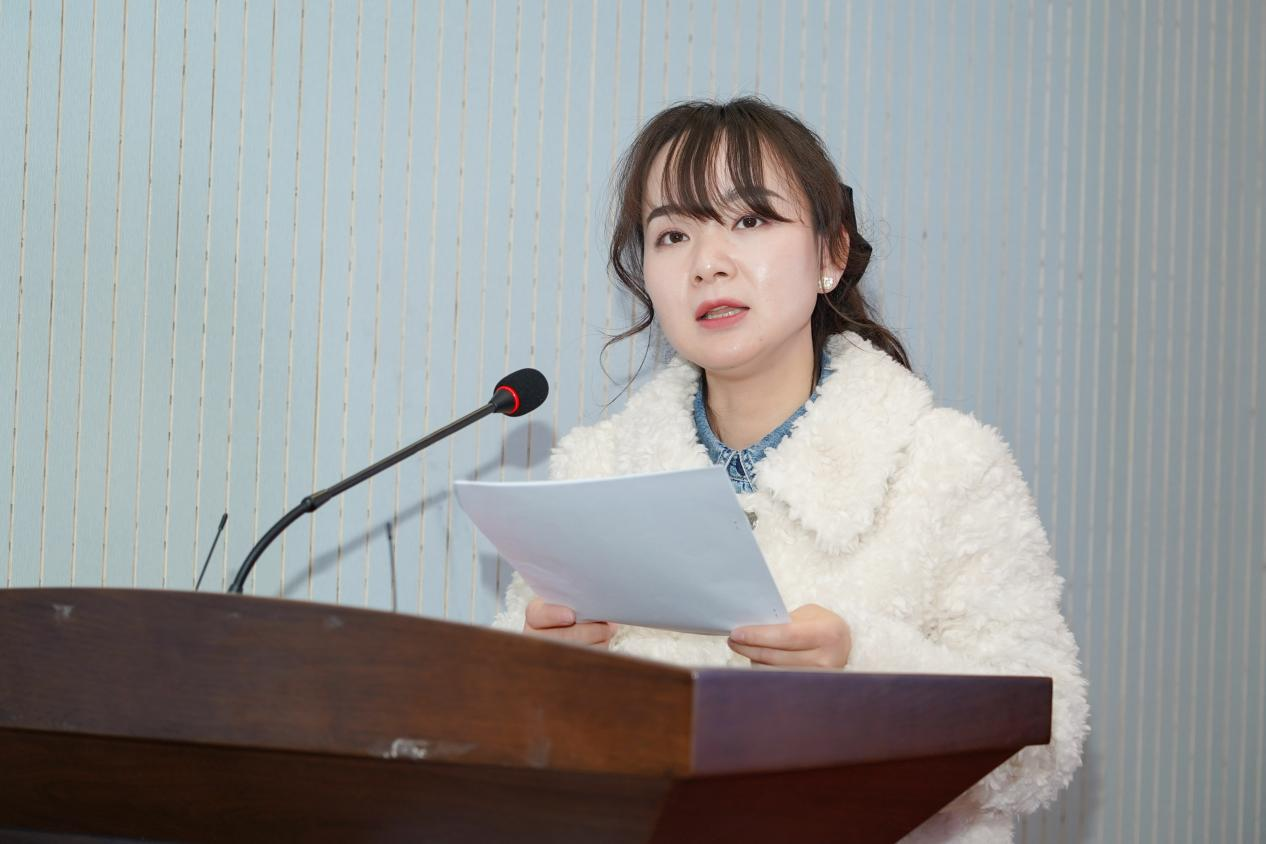 王晴宣读《共青团best365总支部委员会关于表彰“民法典知识竞赛”、“诚信教育主题征文”、“诚信教育手抄报”获奖员工的决定》