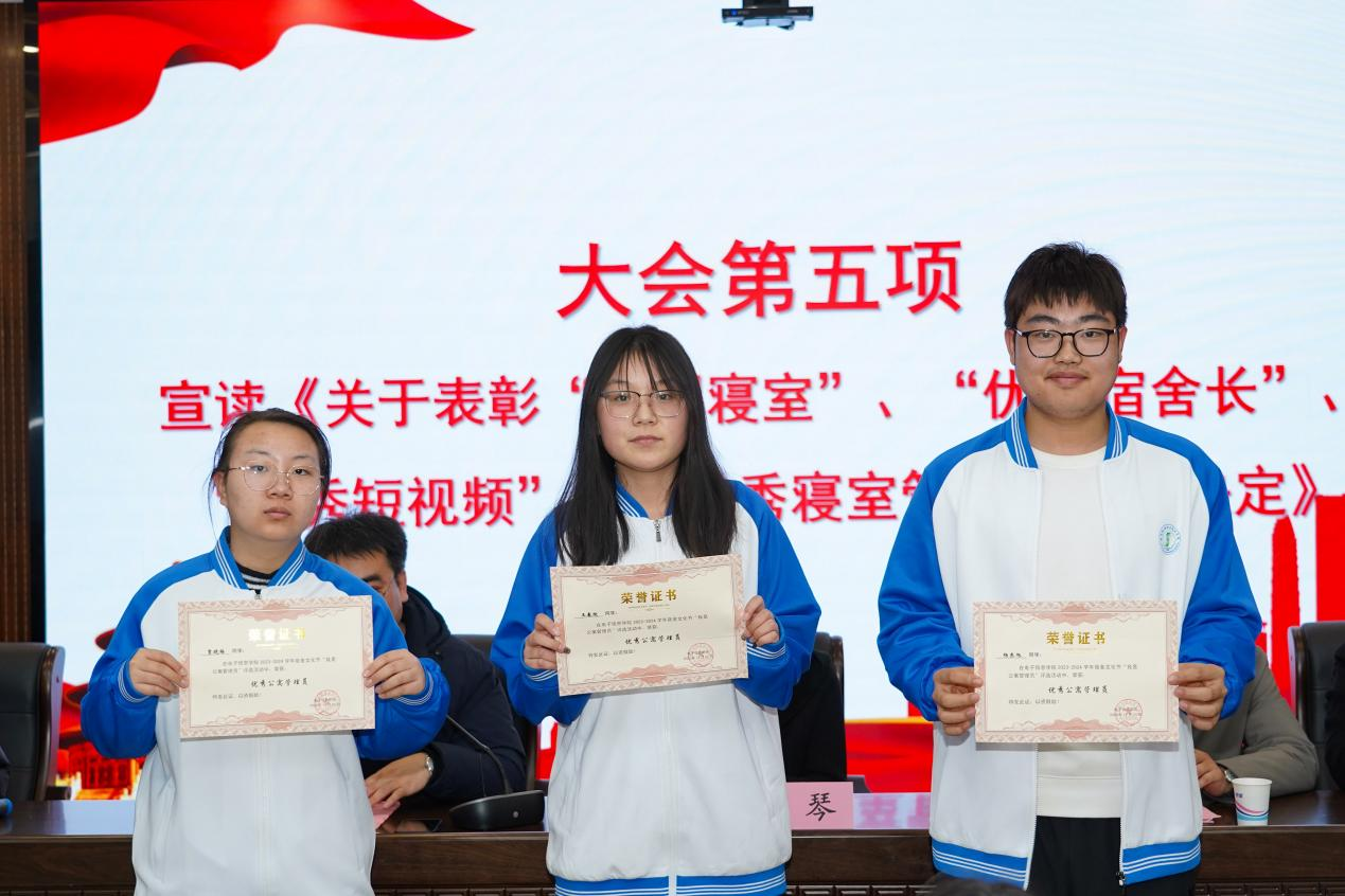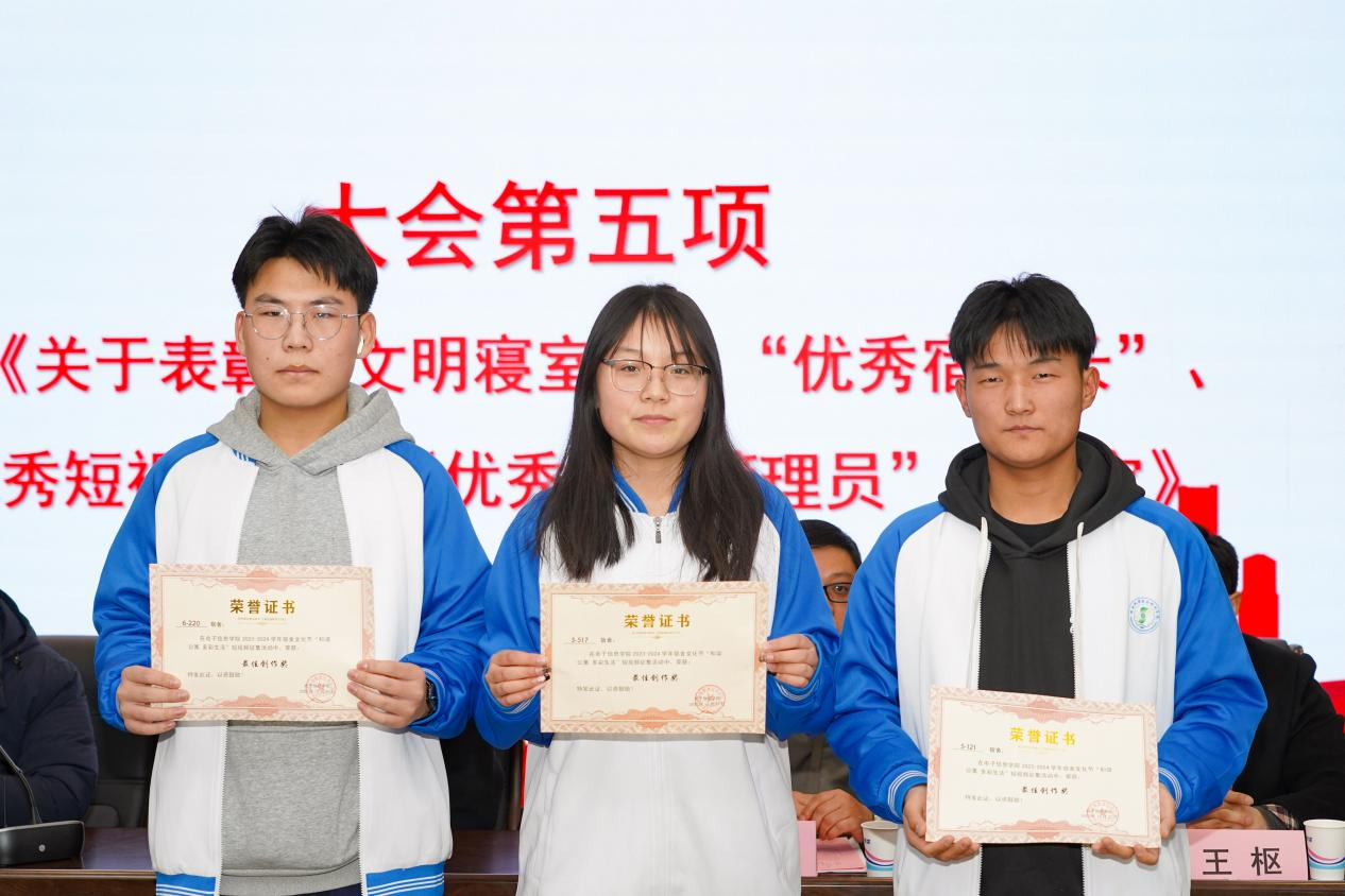 “文明寝室”、“优秀宿舍长”、“优秀短视频”、“优秀寝室管理员”获奖员工代表领奖