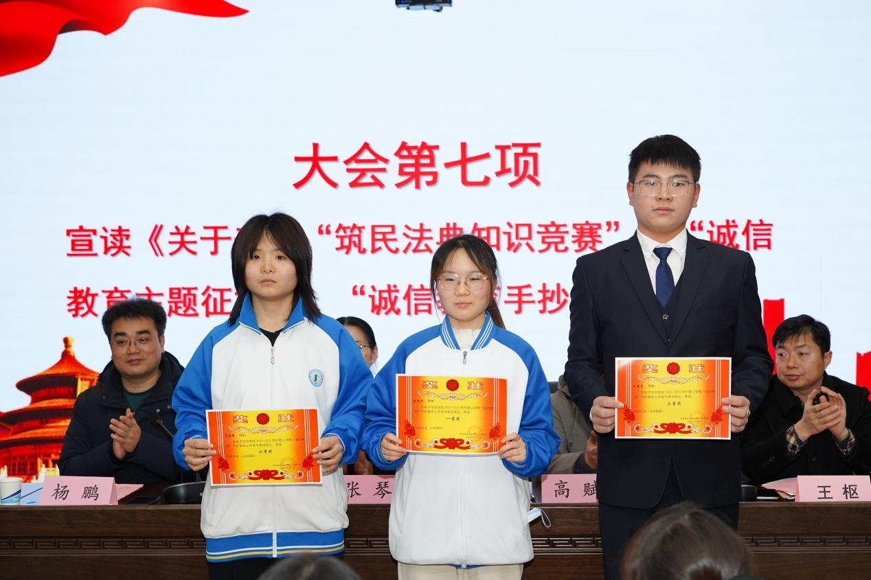 “民法典知识竞赛”、“诚信教育主题征文”、“诚信教育手抄报”获奖员工领奖