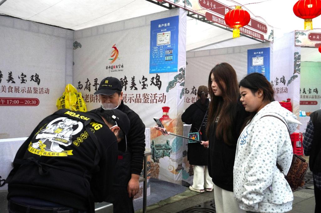 在展会现场,员工们分组行动,有的负责西凤酒展区的直播推广,有的聚焦非遗技艺体验区的文化展示,有的则参与“醉美宝鸡”消费体验周活动的线上宣传。