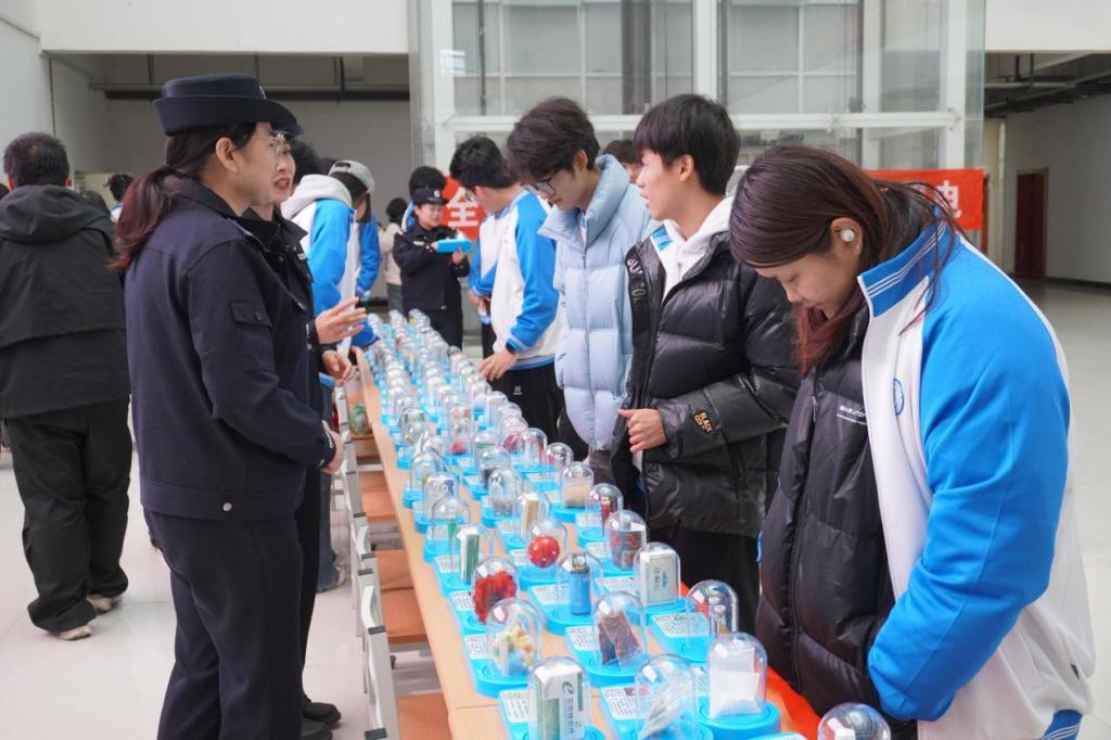 活动伊始,戒毒所的三位警官通过陈列的仿真毒品模型和精心设计的禁毒知识展板,为现场同学进行了耐心细致地讲解。从伪装成“奶茶”“跳跳糖”“邮票”等日常物品的新型合成毒品,到传统毒品的各种形态,警官们结合真实案例,揭示了这些潜藏在身边的毒品陷阱及其对个人、家庭和社会造成的巨大危害。同学们表现出浓厚兴趣,簇拥在展台前提问交流,直观地认识了毒品的欺骗性与隐蔽性,发出了阵阵惊叹,纷纷表示“大开眼界”“原来毒品离我们并不遥远”。