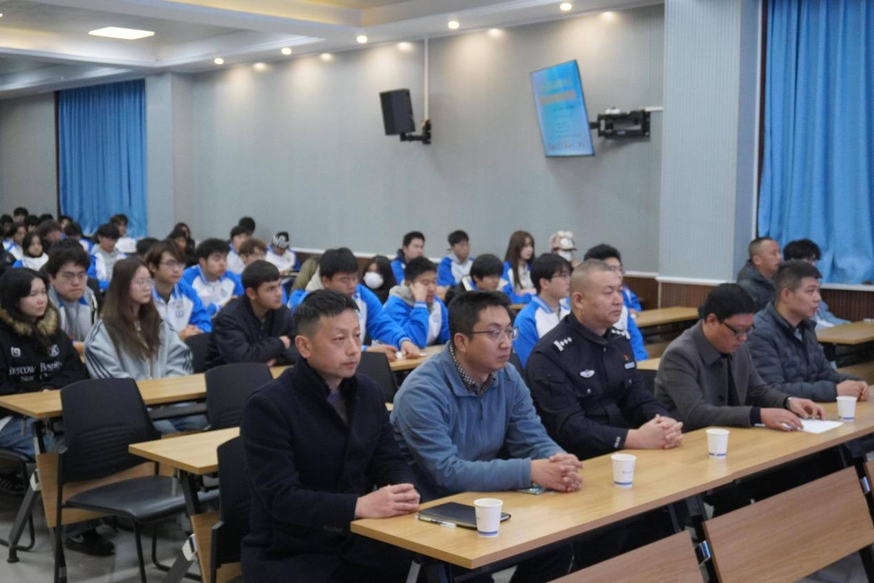 随后,一级警长、宣讲团副团长袁军峰警官为全场师生带来了一场精彩的禁毒法治专题讲座。凭借从警30年积累的丰富教育矫治经验,袁警长从毒品的成瘾性机制、当前毒品治理的形势,深入到青少年成瘾性物质滥用的预防等课题的研究。他用一个个触目惊心的真实案例,以案释法,深刻剖析了毒品如何一步步摧毁人的身心健康、吞噬幸福家庭、危害社会安定。袁警长的讲座内容翔实、语言生动、发人深省,现场掌声不断,在互动环节中,同学们踊跃提问,气氛热烈。
