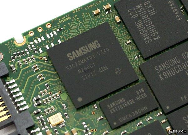 三星的新一代主控采用三核Cortex A9系列ARM处理器,代号为S4LJ204X01,目前消费级市场上的主控都是双核心芯片,多一个核心就可以让主控有更多的资源去执行多个指令,比如数据的读写、垃圾回收和TRIM指令等繁琐的工作,上代470系列的S3C29MAX01只有两个ARM内核,因此理论上新主控会比旧主控性能高至少50%。