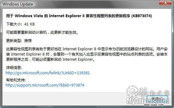 微软还同时通过Windows Update放出了多个常规更新补丁,涉及IE8兼容性试图列表更新、Vista不兼容程序更新、XP/Vista AutoRun限制、exFAT文件系统格式支持、XPS打印、夏令时修订等等,有需要的可以选择升级。