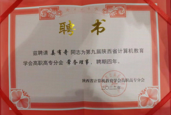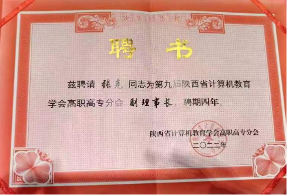 论坛期间,为陕西省计算机教育学会高职高专分会理事颁发了聘书,张克被聘为副理事长,姜有奇被聘为常务理事。