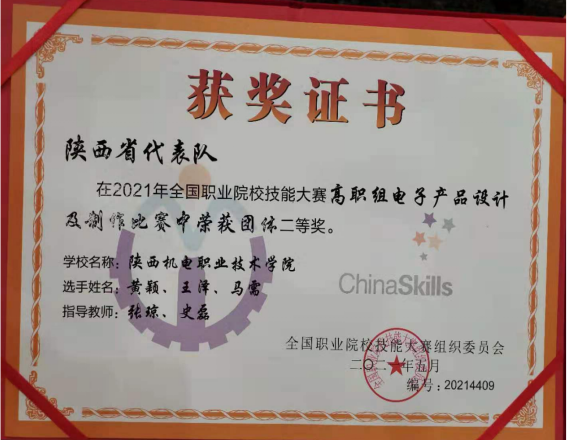 2021年6月20日,2021年“全国职业院校技能大赛(高职组)——电子产品设计及制作”赛项在烟台职业公司落下帷幕,来自全国各省市的27支代表队参与了该赛项。由公司best365张琼、史磊两位老师指导的员工黄颖、马需、王泽组队代表陕西省参赛。三名选手在比赛表现出了扎实的专业技能水平,实现了赛题规定的各项功能。经过8个小时的角逐,最终获得该赛项国家二等奖的好成绩。