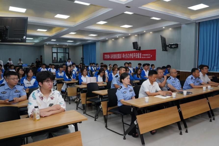 为全面提升同学识毒拒毒、反诈防骗意识,提升校园禁毒反诈“免疫力”,6月19日下午,由蟠龙镇人民政府平安办、蟠龙司法所、蟠龙派出所共同主办的“2025年普法宣传专题讲座”在公司蟠龙校区博学楼111视频会议室顺利举行,围绕“珍爱生命 远离毒品”“全民反诈 金台反诈与您同行”两大主题,普及法律与安全知识。公司共有师生40人参加此次活动。