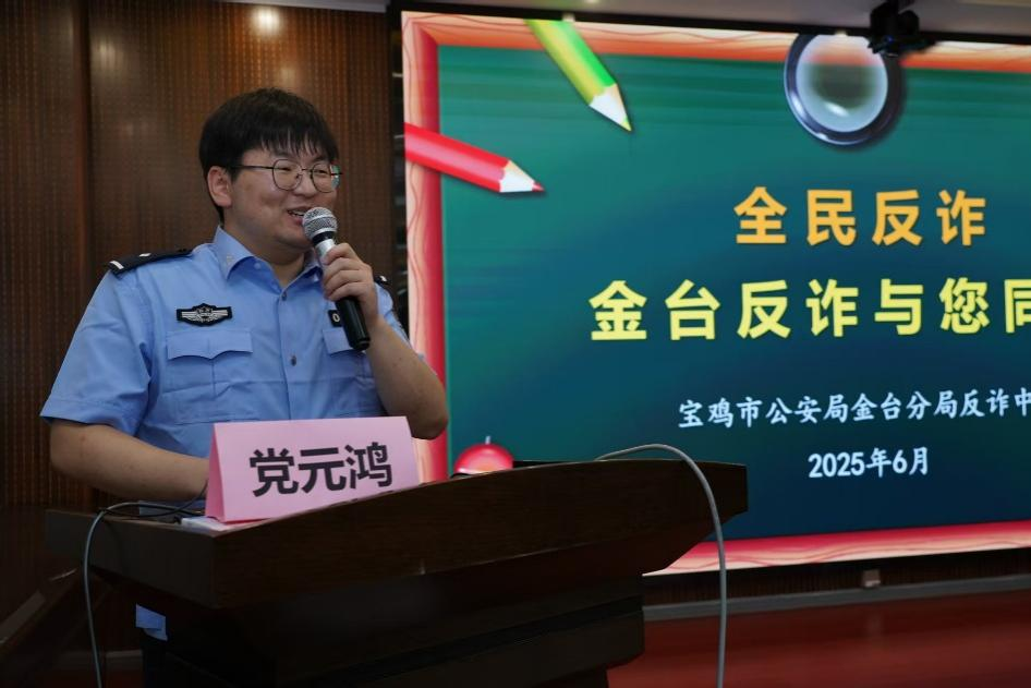 宝鸡市公安局金台分局反诈中心党元鸿同志结合本地真实案例,用“唠家常”的方式剖析诈骗套路。他指出,在“冒充客服退款”“虚假投资理财”案件中,诈骗分子常利用受害者“贪利”和“恐慌”心理实施犯罪。通过播放民警与诈骗分子的真实通话录音,党元鸿同志拆解了骗子如何用专业话术诱导转账的全过程,让同学直呼“大开眼界”。他提醒同学:“收到可疑链接时,不要好奇点击;接到陌生转账要求,务必与对方视频确认身份。”