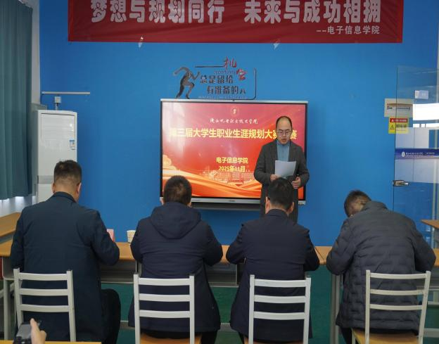 决赛现场气氛热烈,选手们结合电子信息行业发展趋势,聚焦人工智能、集成电路、网络安全等热门领域,从自我剖析、职业探索、路径设计等方面展开精彩展示。有的选手以扎实的专业知识为基础,规划了从技术研发到项目管理的职业路径;有的选手结合行业痛点,提出了兼具创新性与实用性的创业构想;答辩环节中,选手们从容应对评委提问,展现出清晰的逻辑思维与良好的沟通表达能力,赢得现场阵阵掌声。
