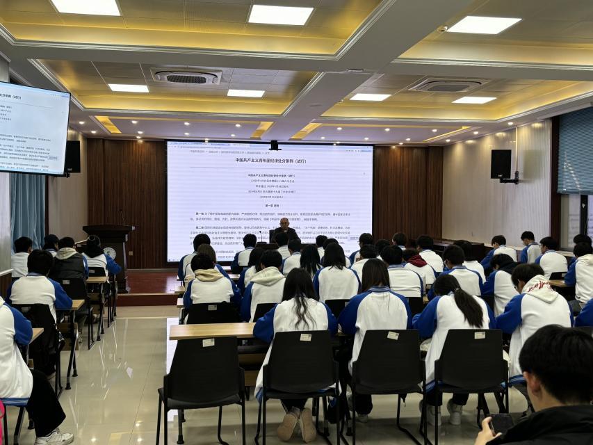 为教育引导青年团员学纪、知纪、明纪、守纪,切实增强纪律意识、规矩意识,best365团总支书记汪思池、团总支副书记郭巧梅于10月28日-10月30日在蟠龙校区和宝福路校区分别开展深入贯彻学习《中国共产主义青年团纪律处分条例(试行)》专题集中学习,进一步增强团员青年遵守纪律的自觉性和主动性。