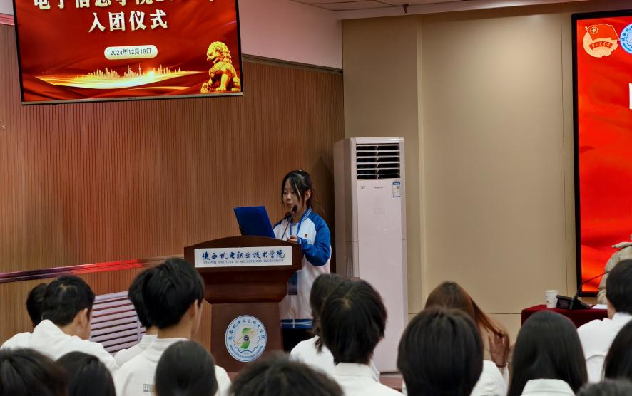 24电子信息3班王娜同学作为蟠龙校区新团员代表发言,她表示入团不仅仅是一种形式,更是一种精神的传承和责任的担当。我们应当以更加严格的标准要求自己,努力学习,积极进取,不断提升自己的综合素质。