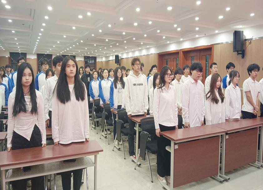 伴随着《光荣啊,中国共青团》的激昂旋律,入团仪式也步入尾声。歌声中充满了新团员们对青春的热情和对未来的憧憬。此次入团仪式标志着新团员们向共产主义事业更迈进了一步,相信每一位新团员会牢记习近平总书记的殷殷嘱托,勤奋学习,增强本领,肩负起为中国式现代化挺膺担当的青春责任。