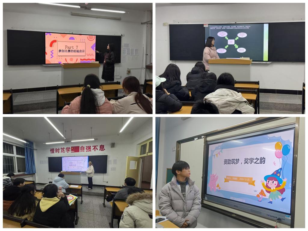 在宣讲会上,宣讲团成员真诚分享了自己获得国家励志奖学金的宝贵经验,他们从课堂笔记整理、课后知识复盘,以及如何在团队协作、方案打磨中突破重围,和从创意萌生到赛场逆袭等多方面展开分享。用亲身经历鼓励同学们要怀揣对知识的炽热追求,在困难面前坚定无畏,坚信自己定能创造更加灿烂的未来,以奋斗之笔书写属于自己的辉煌篇章。