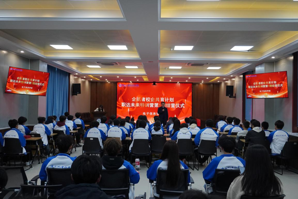 结营仪式上,公司党支部书记杨鹏发表致辞,他对本次特训营的圆满举办表示热烈祝贺,对企业方的大力支持与导师们的辛勤付出表示衷心感谢。他指出,企航者校企共育计划是公司深化产教融合、推进人才培养模式改革的重要举措,职达未来特训营的成功落地,为校企双方进一步合作奠定了坚实基础。希望全体学员以此次结营为新起点将所学知识运用到实践中,在职业道路上稳步行。