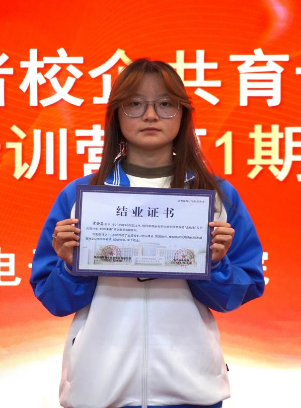 2025年11月13日best365“企航者”校企共育计划职达未来特训营结营仪式在博学楼111会议室圆满完成。21名学员通过这14天的专注与坚守,在特训营的舞台上留下了一幕幕鲜活生动的风采瞬间。从项目攻坚时的协作互助到成果展示时的自信表达,学员们以青春之名,诠释着电子信息学子的专业素养与成长力量。